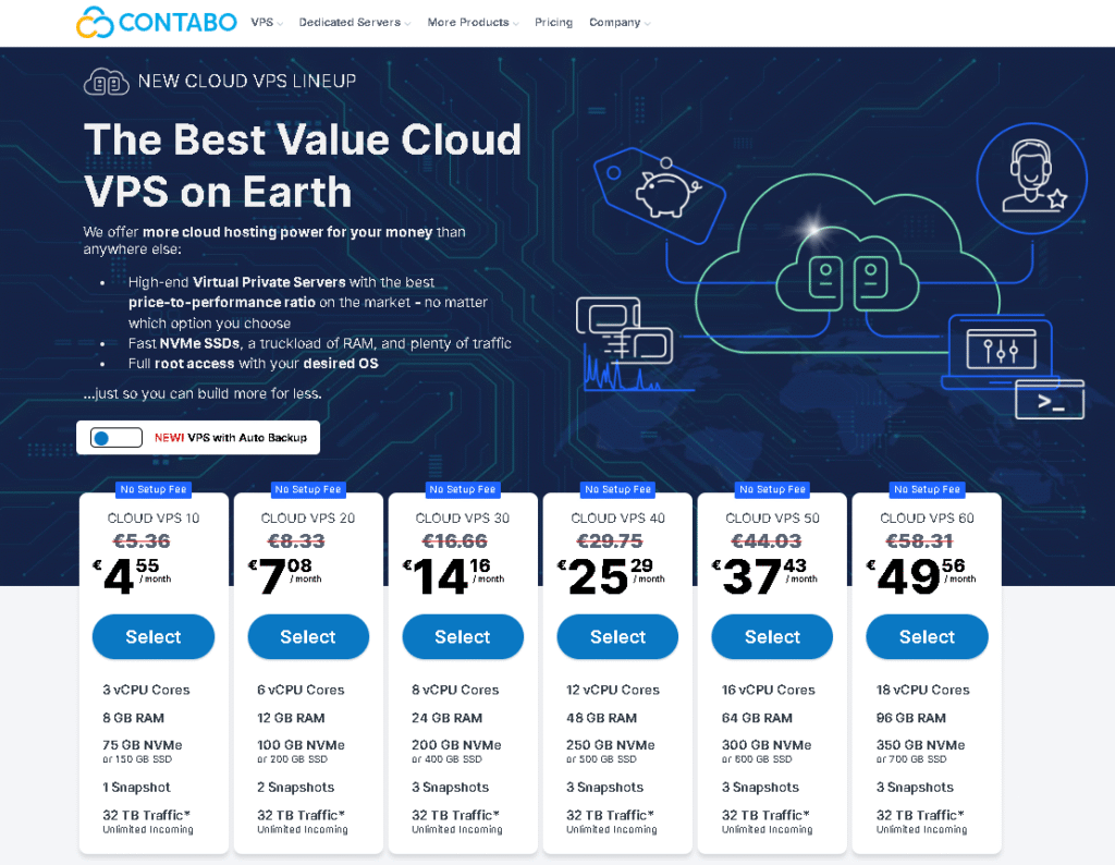 Berikut paket VPS Contabo terbaru dengan tombol “Beli” untuk setiap paketnya: